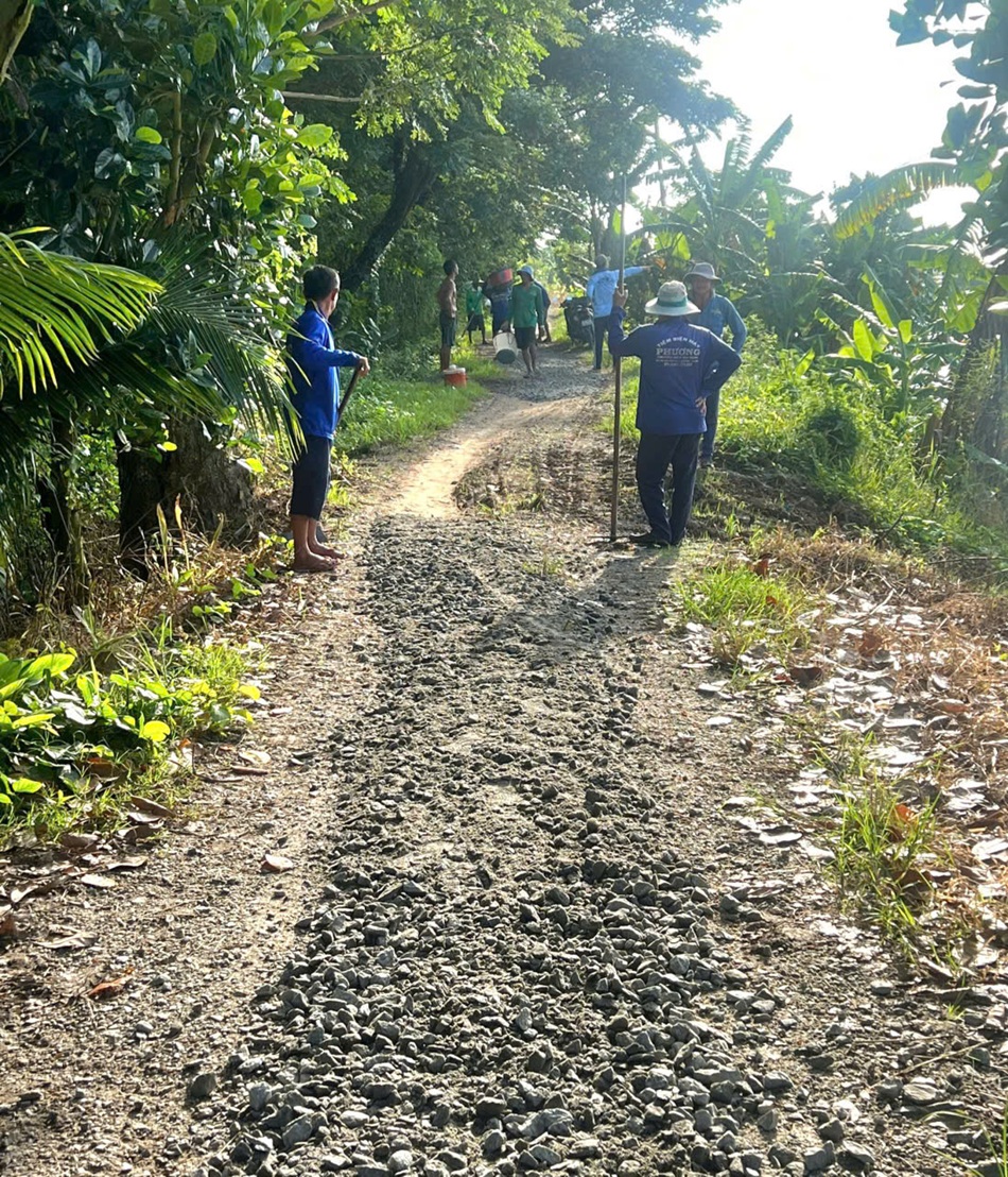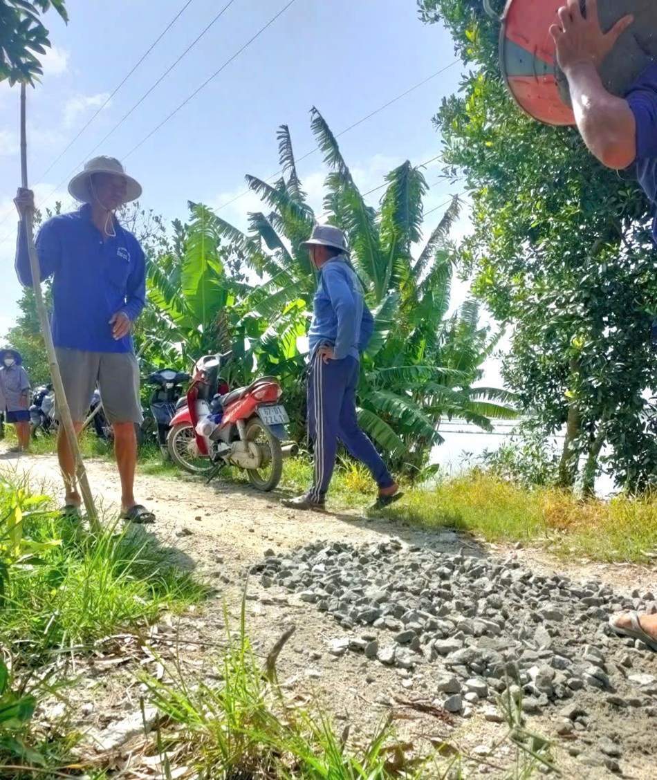 Cụ thể, Ban ấp Bình Hưng 2 đã thực hiện dặm vá, rãi đá chống lầy tuyến đường giao thông nông thôn (thuộc tuyến nam Thầy Phó) với tổng chiều dài 3km; tổng kinh phí hơn 12 triệu đồng từ nguồn vận động bà con và các mạnh thường quân trong và ngoài ấp.