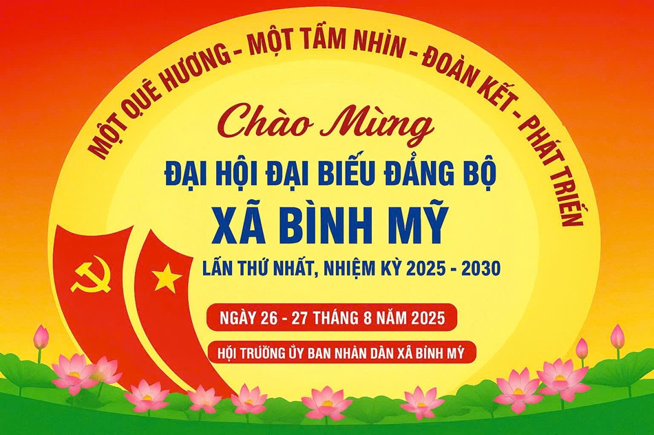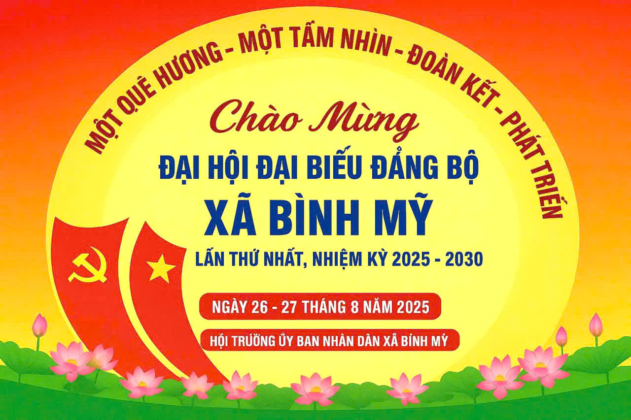 Đại hội đại biểu Đảng bộ xã Bình Mỹ lần thứ nhất nhiệm kỳ 2025 - 2030 dự kiến được tổ chức vào ngày 26 và 27/8/2025, đây là đợt sinh hoạt chính trị sâu rộng, có ý nghĩa sâu sắc đối với sự phát triển của xã giai đoạn 2025 – 2030. Và cũng chính là sự kiện chính trị đặc biệt quan trọng, đánh dấu bước ngoặt trong công cuộc lãnh đạo, chỉ đạo phát triển kinh tế - xã hội, đảm bảo quốc phòng - an ninh và xây dựng hệ thống chính trị vững mạnh.