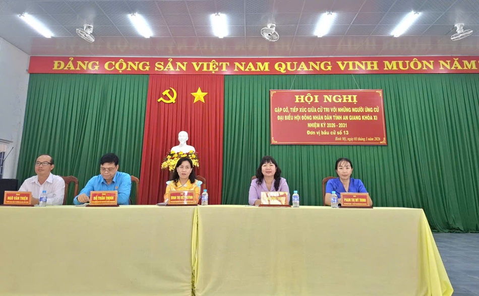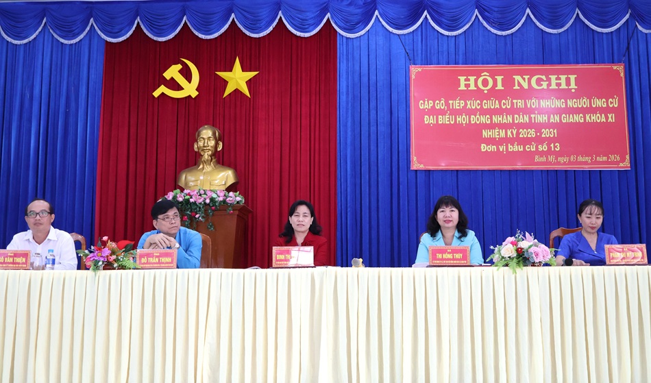 Ngày 03/3/2026, Ủy ban nhân dân xã Bình Mỹ phối hợp với Ủy ban MTTQ Việt Nam xã tổ chức Hội nghị tiếp xúc cử tri để vận động bầu cử cho những người ứng cử đại biểu Hội đồng nhân dân tỉnh An Giang khóa XI, nhiệm kỳ 2026 – 2031 (đơn vị bầu cử số 13).