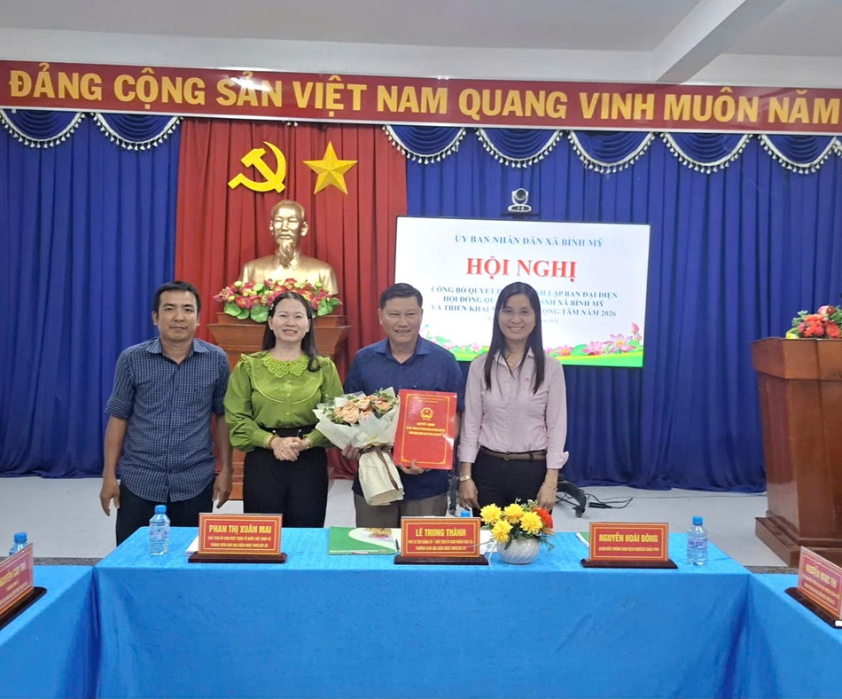 Tại phiên họp đã công bố Quyết định thành lập Ban đại diện HĐQT NHCSXH xã Bình Mỹ. Đồng thời, các đại biểu được nghe báo cáo tóm tắt kết quả hoạt động tín dụng chính sách xã hội trong 02 tháng đầu năm 2026 và phương hướng, nhiệm vụ các tháng tiếp theo trong năm. Theo báo cáo, sau sáp nhập, xã Bình Mỹ hiện có 72 Tổ Tiết kiệm và vay vốn (TK&VV) với 3.058 tổ viên đang còn dư nợ, bình quân khoảng 50 tổ viên/tổ. Trên địa bàn duy trì 03 điểm giao dịch gồm: Bình Mỹ (27 tổ), Bình Chánh (17 tổ) và Bình Thủy (28 tổ), tạo điều kiện thuận lợi cho người dân, nhất là hộ nghèo và các đối tượng chính sách tiếp cận nguồn vốn tín dụng ưu đãi.