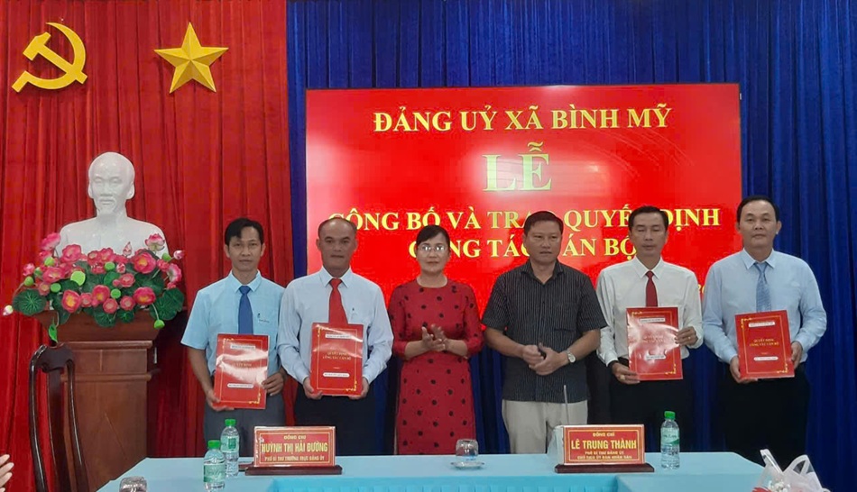 Điều động đồng chí Hồ Ngọc Hồ, Ủy viên Ban Chấp hành Đảng bộ, Phó Chủ tịch Ủy ban Mặt trận Tổ quốc Việt Nam xã đồng thời là Chủ tịch Hội Nông dân xã đến nhận công tác tại Văn phòng Đảng ủy xã Bình Mỹ, bỏ nhiệm giữ chức Chánh Văn phòng Đảng ủy xã Bình Mỹ.