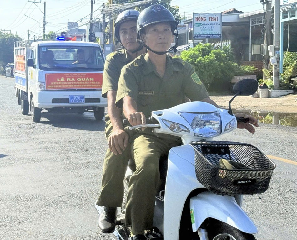 Tham dự Lễ ra quân có ông Huỳnh Tấn Hưng – Phó Chủ tịch UBND xã; ông Nguyễn Huy Cường - Phó Chủ tịch UBND xã Bình Mỹ; Trung tá Hà Văn Hiếu – Trưởng Công an xã chủ trì Lễ ra quân; cùng tham dự có các lực lượng Ban chỉ huy quân sự xã, lực lượng bảo vệ ANTT ở cơ sở, CBCS Công an xã cùng tham gia.