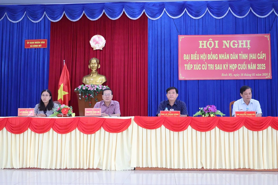 Sáng ngày 16/01/2026; HĐND – UBND – UBMTTQVN xã Bình Mỹ tổ chức buổi tiếp xúc giữa cử tri với đại biểu HĐND 2 cấp (tỉnh và xã) sau kỳ họp thường lệ cuối năm 2025. Đến tham dự buổi tiếp xúc cử tri có Ông Lê Thanh Dũng, Trưởng ban Dân tộc - Đại biểu HĐND tỉnh; Ông: Nguyễn Thanh Hải, Hiệu trưởng trường Cao đẳng nghề An Giang - Đại biểu HĐND tỉnh.