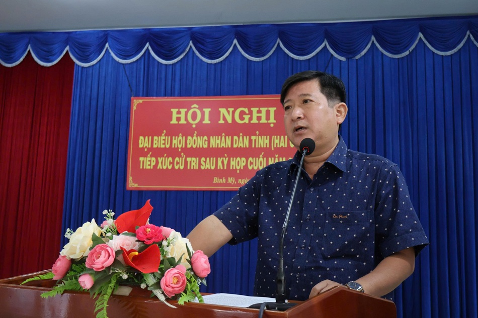 Tại buổi tiếp xúc bà con cử đã kiến nghị đến HĐND 02 cấp một số vấn đề như tình trạng xuống cấp hư hỏng mặt đường tuyến QL.91 đoạn Vàm Xáng Cây Dương đến cầu Thầy Phó cần có hướng khắc phục các tuyến hư hỏng sạt lở đầu vàm ấp Bình Phú cù lao Bình Thuỷ; sạt lở tuyến Kênh Thầy Phó ấp Bình Hưng II, mặt đường xuống cấp, sạt lở đường cây dương ở ấp Bình Minh cần có chế độ chính sách khám sức khoẻ cho các cô chú hoạt động cách mạng, thương binh, bệnh binh; khi nào người dân nhận được chế độ hỗ trợ cho các cặp vợ chồng sinh đủ 02 con từ đủ 35 tuổi trở xuống; cần đẩy nhanh thực hiện dự án Khu Đô thị Bình Mỹ…