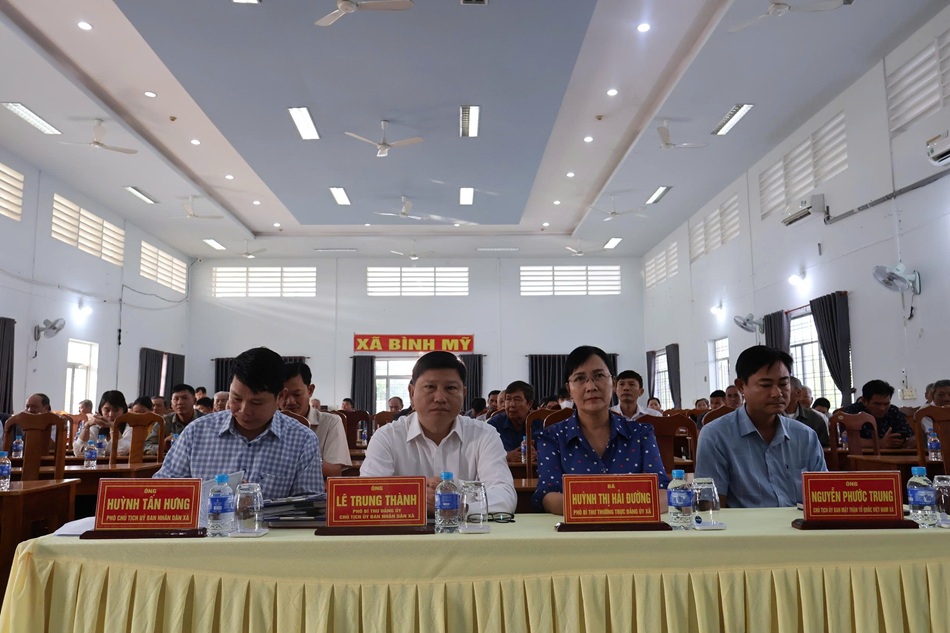 Về phía cấp xã có Ông Nguyễn Nghi Em, Bí Thư Đảng ủy – Chủ tịch HĐND xã Bình Mỹ; Bà: Lê Hoàng Vân – PCT. HĐND xã; Bà Huỳnh Thị Hải Đường, Phó Bí thư thường trực Đảng uỷ; Ông Lê Trung Thành, Phó Bí thư Đảng ủy – Chủ tịch UBND xã; ông Huỳnh Tấn Hưng, Phó Chủ tịch UBND xã; Ông Nguyễn Phước Trung - Chủ tịch UB.MTTQVN xã Bình Mỹ; cùng các Đại biểu Hội đồng nhân dân xã nhiệm kỳ 2021 – 2026 và bà con cử tri trên địa bàn xã cùng tham dự.