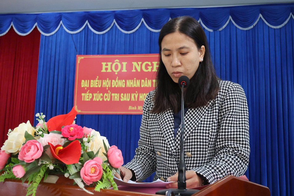 Tại buổi tiếp xúc bà con cử tri đã nghe thông tin về kết quả kỳ họp cuối năm 2025 HĐND tỉnh, báo cáo kết quả giải quyết ý kiến, kiến nghị của cử tri trước kỳ họp cuối năm 2025 và các lần tiếp xúc cử tri trước đó; báo cáo kết quả giám sát việc giải quyết kiến nghị của cử tri; Báo cáo tóm tắt kết quả kỳ họp Hội đồng nhân dân cuối năm 2025 và kỳ họp lần thứ 24 (chuyên đề) của Hội đồng nhân dân xã.