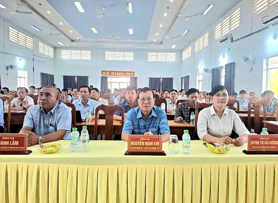 Tại điểm cầu xã Bình Mỹ, đồng chí Nguyễn Nghi Em, Bí thư Đảng ủy xã, chủ trì hội nghị. Đồng thời, Hội nghị còn vinh dự đón tiếp đồng chí Danh Lắm, Phó Giám đốc Sở Dân tộc và Tôn giáo tỉnh An Giang, đại diện Tổ công tác số 6 của Tỉnh ủy tham dự tại điểm cầu xã.