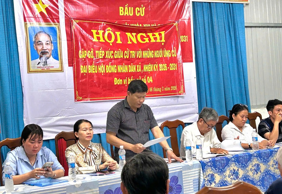 Tại buổi tiếp xúc, các cử tri đã được nghe giới thiệu danh sách, tiểu sử tóm tắt của những người ứng cử đại biểu Hội đồng nhân dân xã nhiệm kỳ 2026 – 2031. Các ứng cử viên cũng đã trình bày chương trình hành động, nêu rõ quyết tâm nếu được cử tri tín nhiệm bầu làm đại biểu sẽ nỗ lực thực hiện tốt vai trò đại diện cho ý chí, nguyện vọng của nhân dân; quan tâm phát triển kinh tế – xã hội, chăm lo đời sống người dân, đặc biệt là các hộ nghèo, hộ cận nghèo và các đối tượng chính sách trên địa bàn.