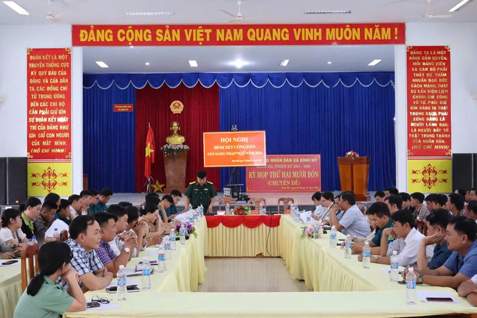 Thiếu tá Phan Văn Sơn, Chỉ huy trưởng BCHQS xã Bình Mỹ, Phó Chủ tịch thường trực Hội đồng Nghĩa vụ Quân sự xã, cho biết: Từ nay đến thời gian giao, nhận quân, để bảo đảm giao quân đạt 100% chỉ tiêu; đề nghị các thành viên Hội đồng nghĩa vụ quân sự xã, các ấp, ban ngành đoàn thể xã đẩy mạnh công tác tuyên truyền, nâng cao ý thức đến mọi người dân về trách nhiệm cũng như nghĩa vụ của công dân thực hiện Luật Nghĩa vụ quân sự; thực hiện phương châm tuyển quân tròn khâu “tuyển người nào, chắc người đó”. Ban Chỉ huy Quân sự xã tham mưu Hội đồng Nghĩa vụ quân sự xã tổ chức lễ trao lệnh gọi nhập ngũ năm 2026. Thành viên Hội đồng NVQS xã phụ trách các ấp, sau khi phát lệnh gọi nhập ngũ cần quản lý chặt chẽ nguồn thanh niên, nắm chắc tình hình tại địa bàn phụ trách, quản lý quân số, thăm, tặng quà động viên công dân sẵn sàng lên đường nhập ngũ trước, trong và sau tết Nguyên đán, bảo đảm nguồn và chất lượng thanh niên khi giao quân.