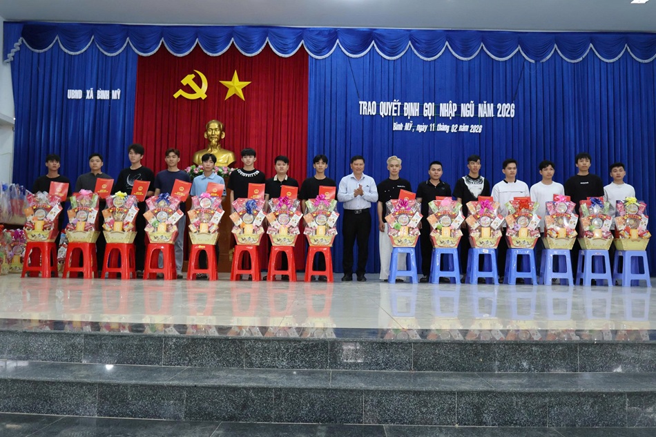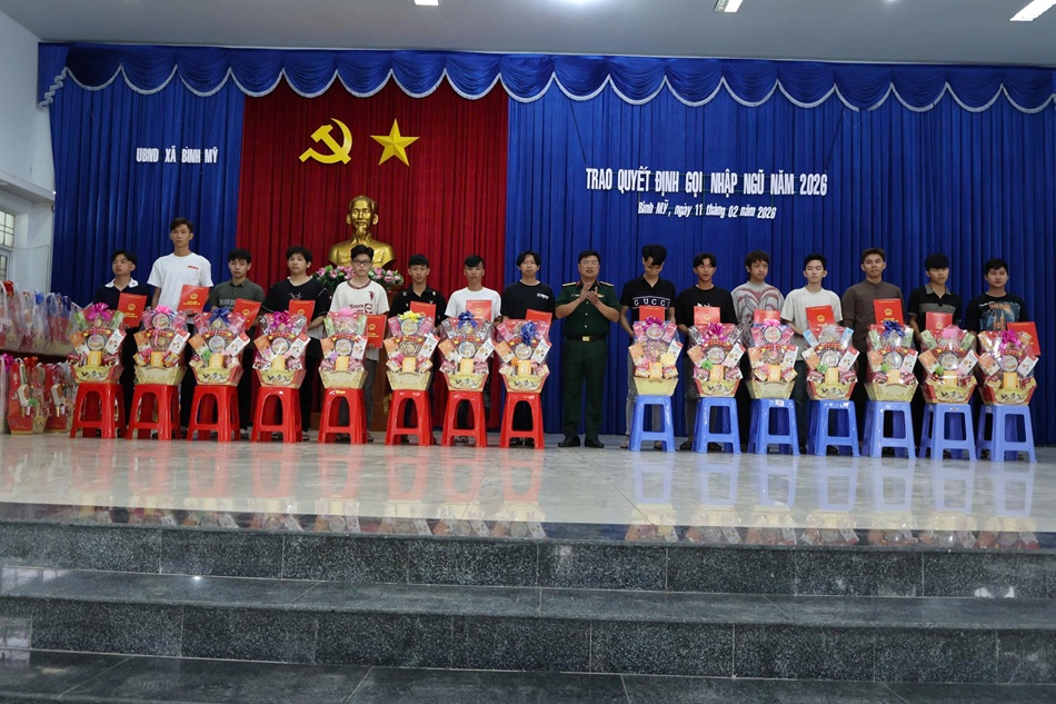 Sáng ngày 11/02/2026, Hội đồng Nghĩa vụ Quân sự xã Bình Mỹ tổ chức Lễ trao lệnh gọi công dân nhập ngũ và thực hiện nghĩa vụ tham gia Công an nhân dân năm 2026 cho các thanh niên trúng tuyển trên địa bàn.