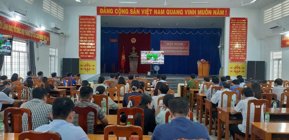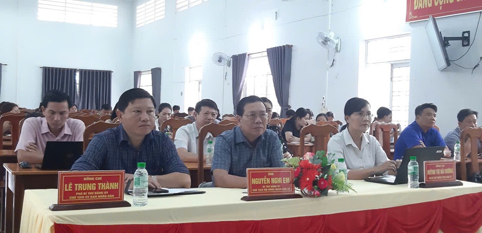 Tại điểm cầu xã Bình Mỹ có ông Nguyễn Nghi Em, Bí thư Đảng uỷ, Chủ tịch Hội đồng Nhân dân xã, Bà Huỳnh Thị Hải Đường, Phó Bí thư thường trực Đảng uỷ, ông Lê Trung Thành, Phó Bí thư – Chủ tịch UBND xã cùng toàn thể cán bộ công chức, viên chức xã, Bí thư Chi bộ trực thuộc Đảng uỷ.