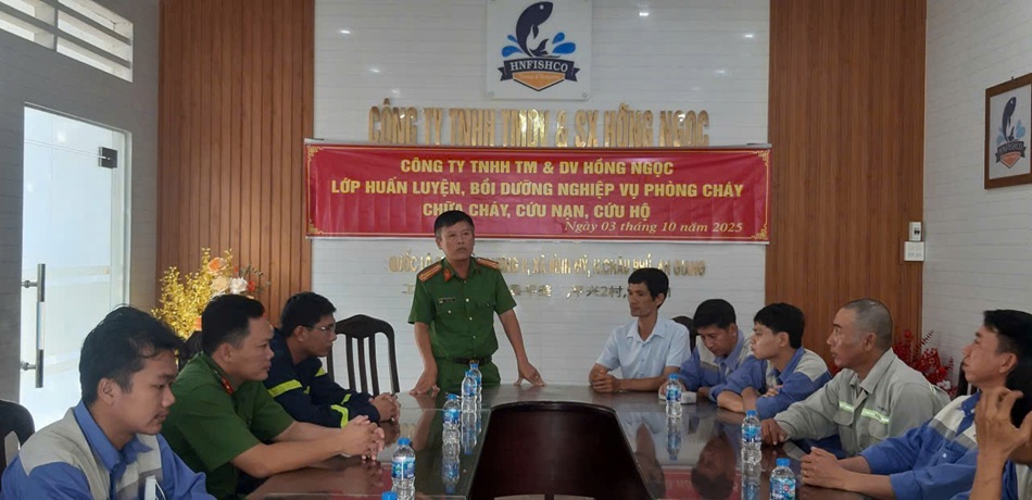 Hưởng ứng ngày hội “toàn dân phòng cháy chữa cháy 04/10 và tăng cường công tác đảm bảo an toàn PCCC, cứu nạn cứu hộ trên địa bàn xã Bình Mỹ. Vừa qua ngày 3/10/2025, Đội Chữa cháy và cứu nạn cứu hộ khu vực Châu Phú phối hợp với Công ty TNHH TM & DV Hồng Ngọc tổ chức buổi tập huấn, bồi dưỡng nghiệp vụ phòng cháy, chữa cháy và cứu nạn cứu hộ cho cán bộ, nhân viên và đội PCCC tại cơ sở và người đứng đầu tại Công ty TNHH TM & DV Hồng Ngọc địa chỉ quốc lộ 91, xã Bình Mỹ, tỉnh An Giang. Đến dự và hướng dẫn triển khai có Trung tá Hồ Phú Tường, Đội Chữa cháy và cứu nạn cứu hộ khu vực Châu Phú.