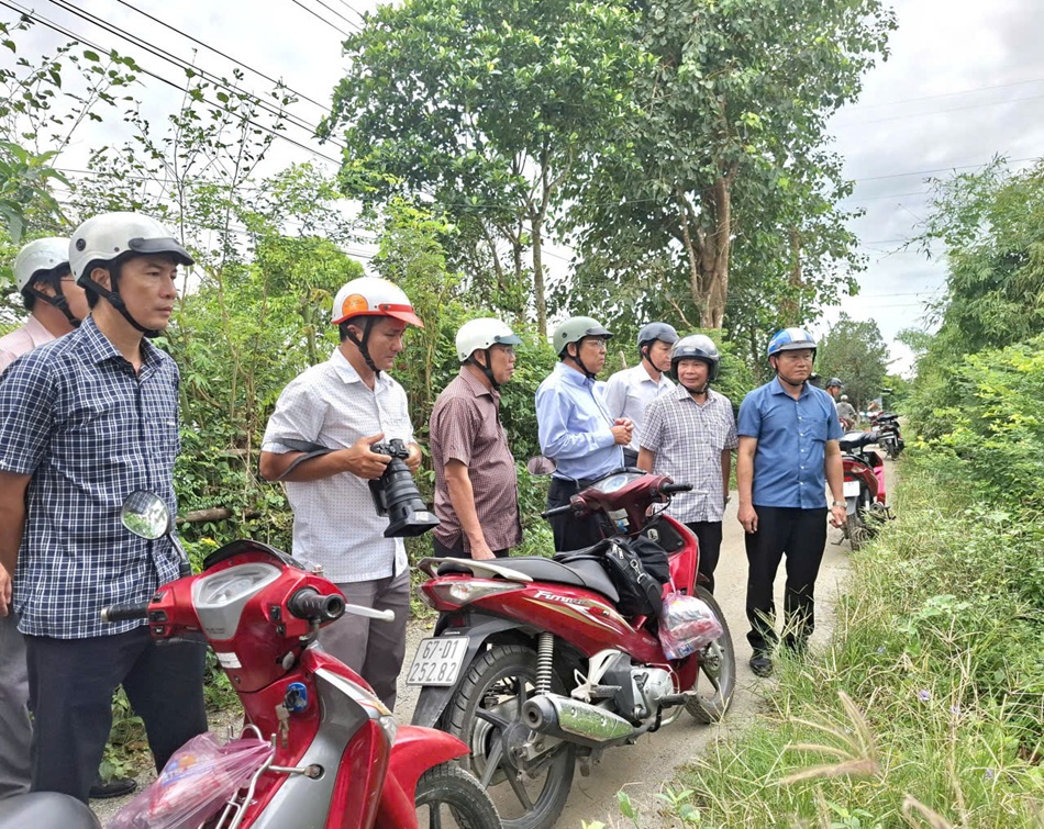 Đi cùng đoàn có ông Nguyễn Nghi Em Bí thư Đảng ủy, Chủ tịch HĐND xã; ông Lê Trung Thành Phó Bí thư Đảng ủy, Chủ tịch UBND xã; ông Huỳnh Tấn Hưng, Phó Chủ tịch UBND xã; cùng đại diện lãnh đạo các ngành có liên quan.