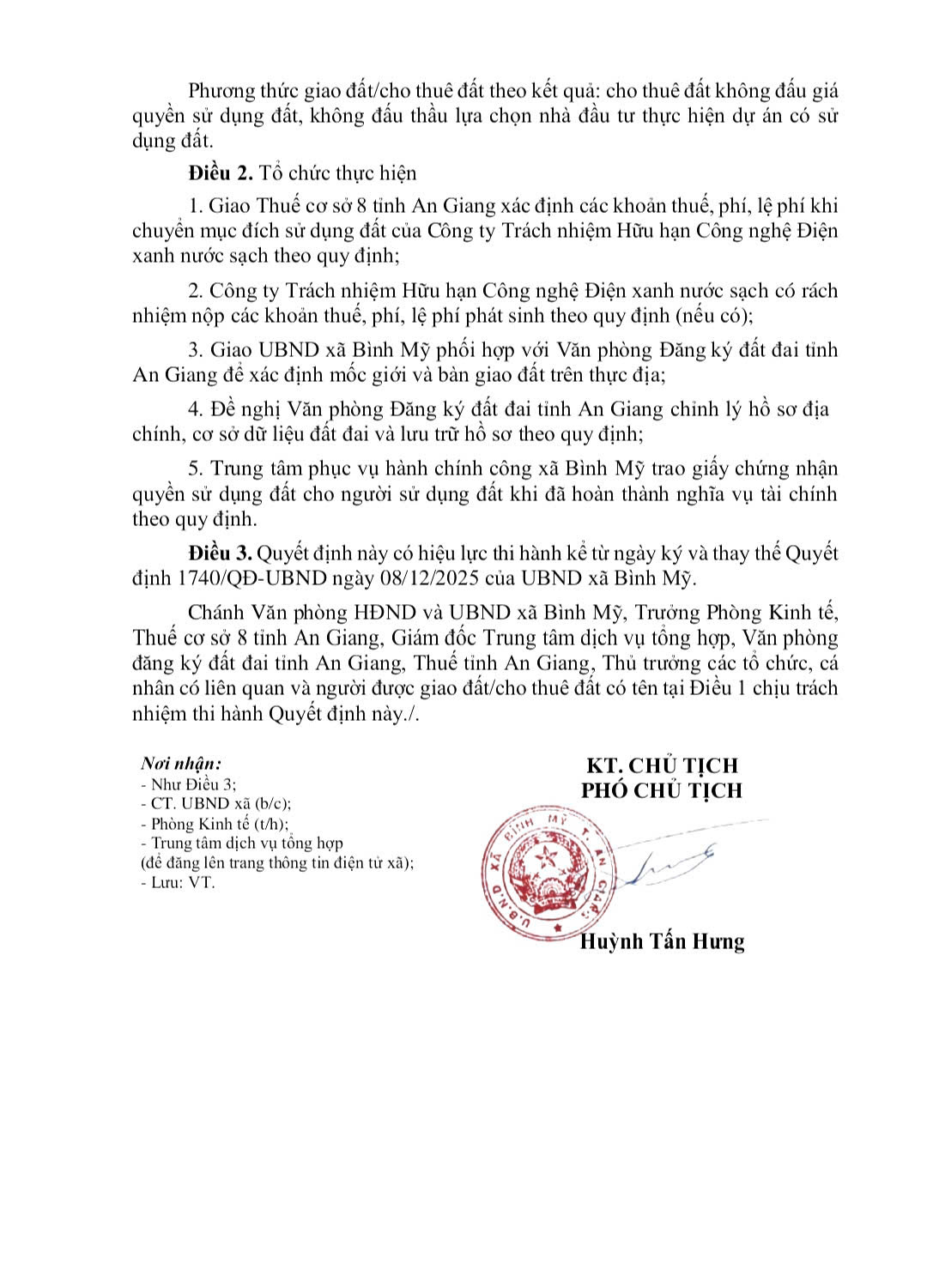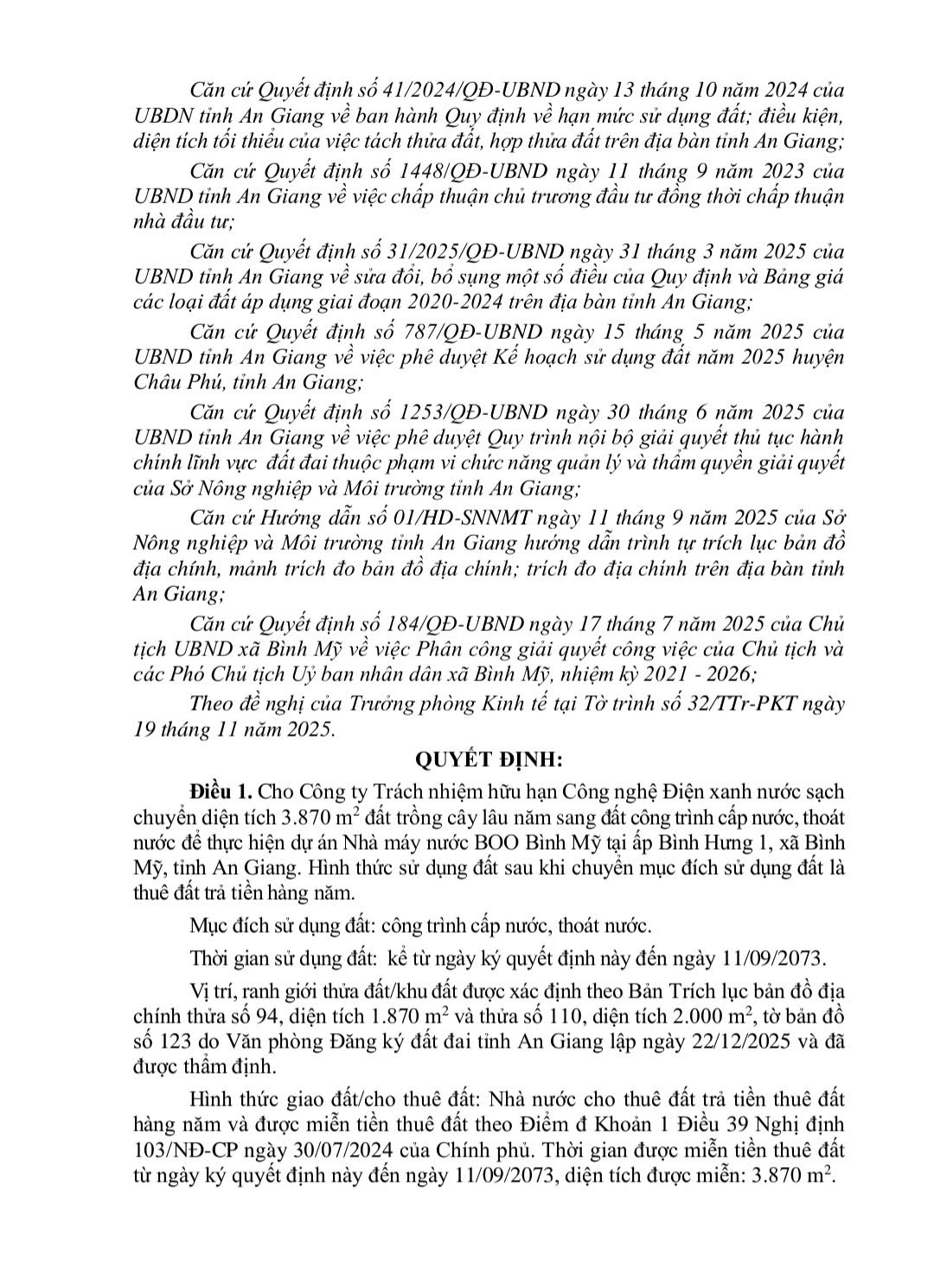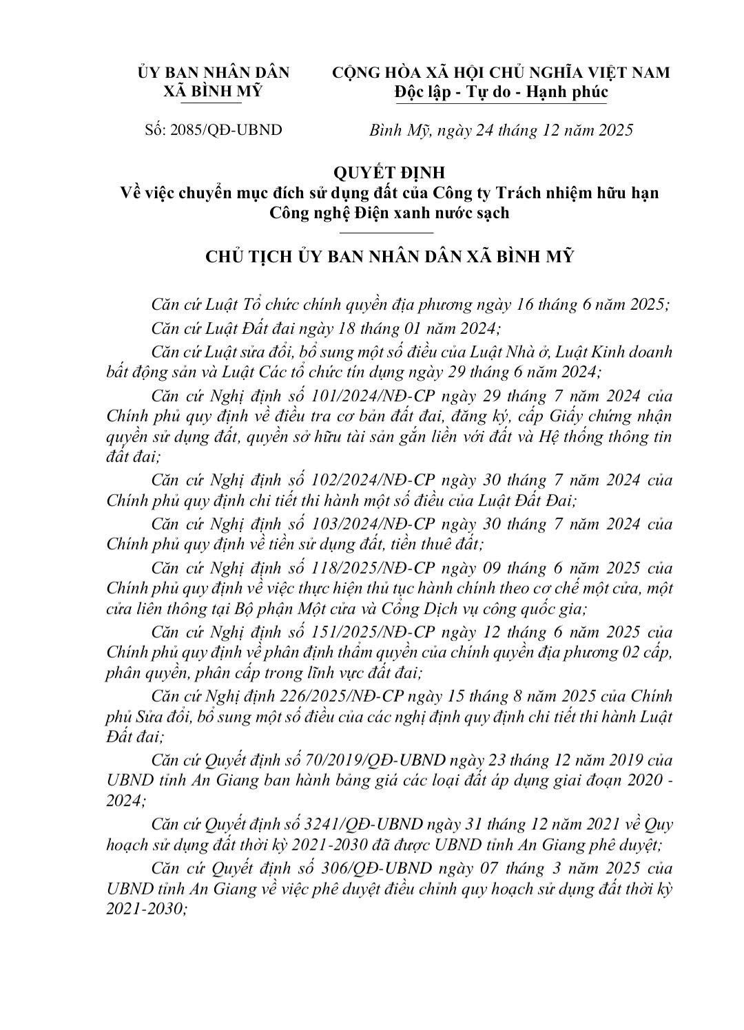 Quyết định: Về việc chuyển mục đích sử dụng đất của Công ty Trách nhiệm hữu hạn Công nghệ Điện xanh nước sạch