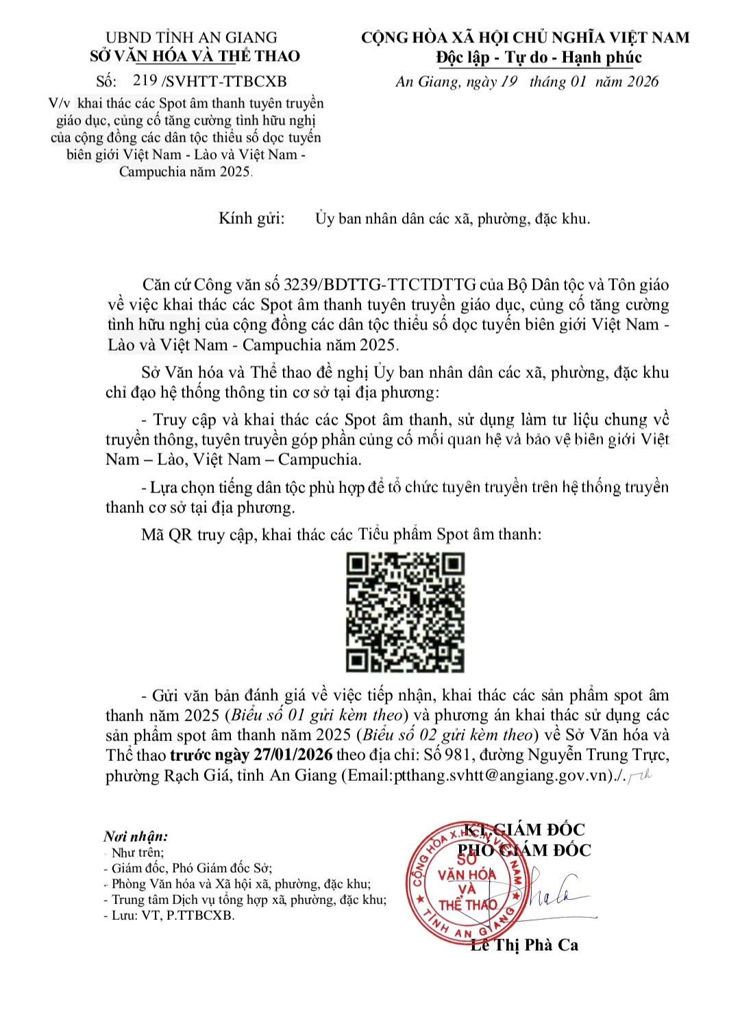 Thông báo: V/v khai thác các Spot âm thanh tuyên truyền giáo dục, cũng cố tăng cường tình hữu nghị của cộng đồng các dân tộc thiểu số dọc tuyến biên giới Việt Nam - Lào và Việt Nam - Campuchia năm 2025
