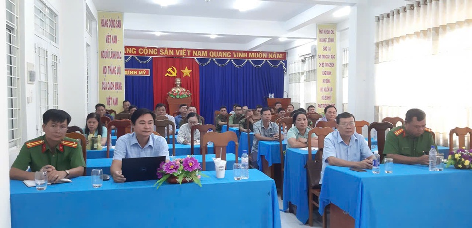 Tại điểm cầu UBND xã Bình Mỹ, dự có đồng chí Nguyễn Nghi Em, Bí thư Đảng uỷ- Chủ tịch Hội đồng Nhân dân xã, ông Nguyễn Phước Trung, Chủ tịch Uỷ ban Mặt trận Tổ Quốc Việt Nam xã, Trung tá Hà Văn Hiếu- Trưởng Công an xã Bình Mỹ cùng các ban ngành, ban ấp trên địa bàn và thành viên Tổ An ninh trật tự cơ sở trên địa bàn xã.