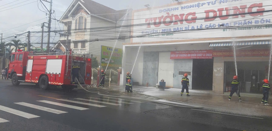 Sáng ngày 15/08/2025; Đội Cảnh sát PCCC và CNCH khu vực Châu Phú; tổ chức thực tập phương án chữa cháy và cứu nạn cứu hộ tại công ty TNHH MTV Tường Dung An Giang. Đến dự có Trung tá Hồ Phú Tường– Đội trưởng Đội Cảnh sát PCCC và CNCH khu vực Châu Phú.