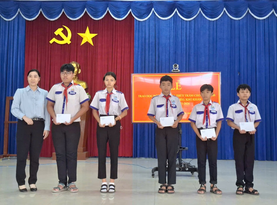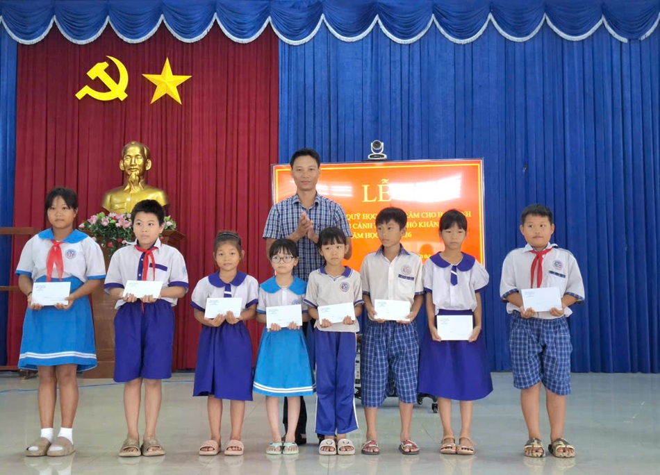 Trao học bổng cho học sinh có hoàn cảnh khó khăn tại xã Bình Mỹ