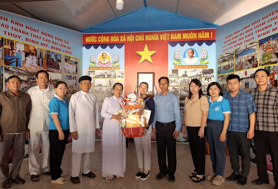 Cùng ngày, Đoàn đã đến thăm, chúc Tết tại Thánh thất Cao Đài xã Bình Mỹ. Tại đây, lãnh đạo Ủy ban MTTQVN xã đã ân cần thăm hỏi đến chức sắc, chức việc, đồng bào tín đồ Cao Đài và ghi nhận và đánh giá cao những đóng góp tích cực của Thánh thất trong việc vận động tín đồ chấp hành tốt chủ trương của Đảng, chính sách pháp luật của Nhà nước, tích cực tham gia các phong trào thi đua yêu nước và công tác an sinh xã hội tại địa phương.