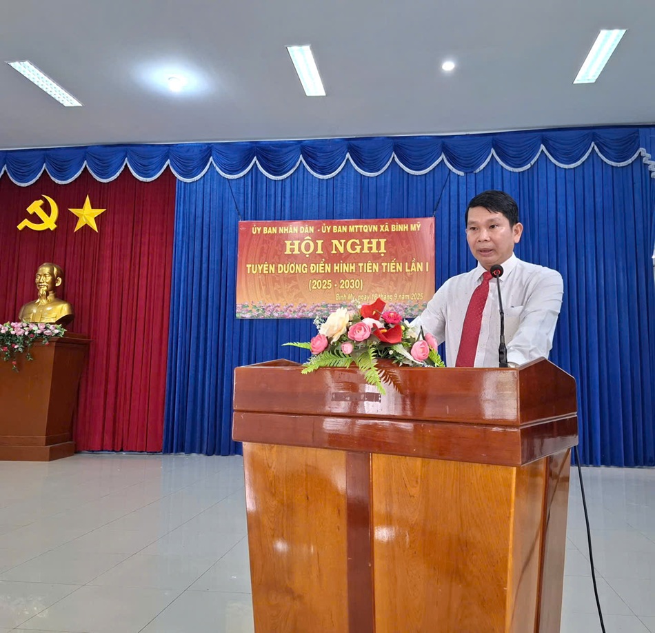 Chiều 18/9, UBND xã Bình Mỹ long trọng tổ chức Hội nghị tuyên dương điển hình tiên tiến xã Bình Mỹ lần thứ I, giai đoạn 2021-2025 và phát động phong trào yêu nước giai đoạn 2025-2030, tiến tới Đại hội thi đua yêu nước tỉnh An Giang lần thứ VII.