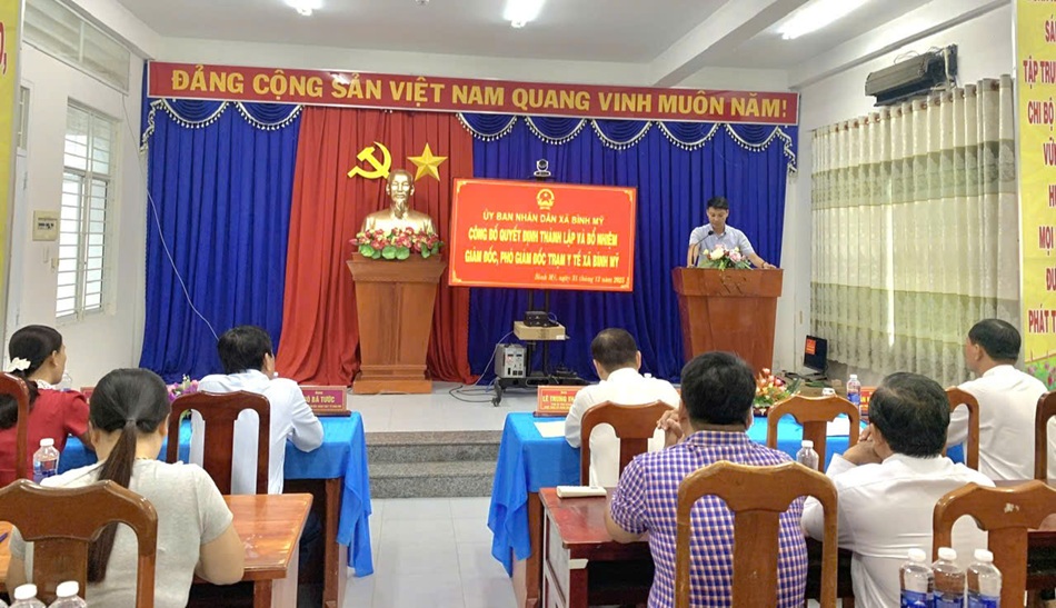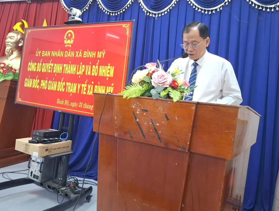 Tại buổi lễ, Trưởng Phòng Văn hóa – Xã hội xã Bình Mỹ đã công bố các quyết định của UBND xã về thành lập Trạm Y tế xã Bình Mỹ và bổ nhiệm Ban Giám đốc Trạm Y tế xã. Lãnh đạo UBND xã đã trao quyết định và tặng hoa chúc mừng các đồng chí được bổ nhiệm, thể hiện sự tin tưởng, ghi nhận quá trình công tác, cống hiến của các đồng chí trong thời gian qua.