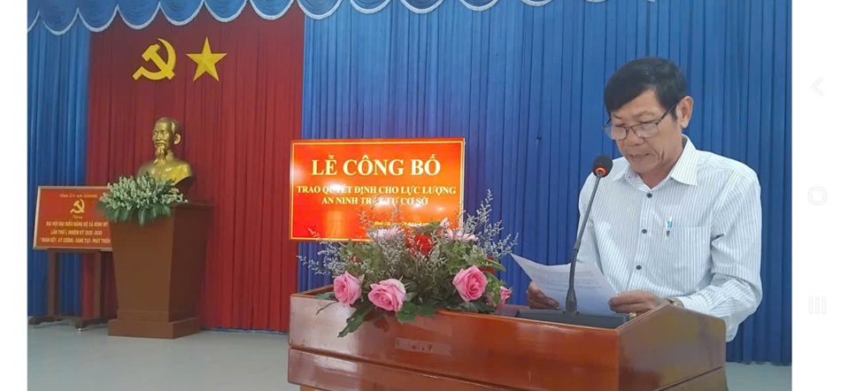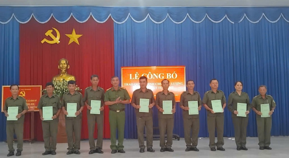 Ngày 29/8/2025, Công an xã Bình Mỹ, tỉnh An Giang tổ chức lễ trao Quyết định tiếp nhận lực lượng an ninh, trật tự ở cơ sở sau sáp nhập đơn vị hành chính. Xã Bình Mỹ là địa phương mới được thành lập trên cơ sở sáp nhập 3 đơn vị hành chính gồm xã Bình Chánh, xã Bình Mỹ và xã Bình Thủy. Đến dự có ông Nguyễn Huy Cường – Phó Chủ tịch UBND xã Bình Mỹ, Trung tá Hà Văn Hiếu, Trưởng Công an xã Bình Mỹ cùng các lực lượng an ninh, trật tự ở cơ sở trên địa bàn xã.