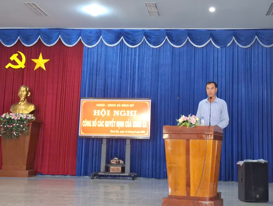 Sáng ngày 14/8, Ủy ban nhân xã Bình Mỹ (tỉnh An Giang) tổ chức hội nghị công bố Quyết định tiếp nhận và bổ nhiệm viên chức lãnh đạo quản lý các trường trên địa bàn. Ông Nguyễn Huy Cường - Ủy viên Ban Thường vụ Đảng ủy, Phó Chủ tịch UBND xã chủ trì Hội nghị.