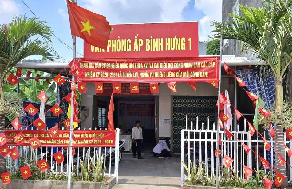 Xã Bình Mỹ khẩn trương hoàn tất công tác trang trí, sẵn sàng cho Ngày bầu cử 15/3/2026